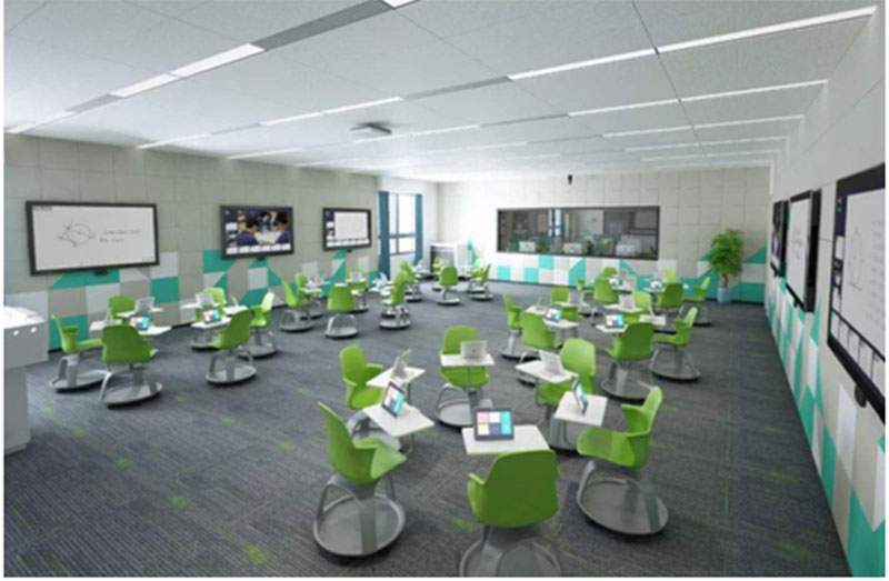 是一種典型的智慧學習環(huán)境的物化,是多媒體和網(wǎng)絡教室的高端形態(tài),它是借助物聯(lián)網(wǎng)技術、云計算技術和智能技術等構(gòu)建起來的新型教室,該新型教室包括有形的物理空間和無形的數(shù)字空間,通過各類智能裝備輔助教學內(nèi)容呈現(xiàn)、便利學習資源獲取、促進課堂交互開展,實現(xiàn)情境感知和環(huán)境管理功能的新型教室。